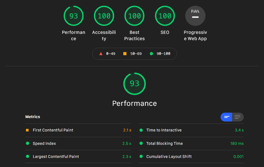 The Splide slider does not degrade Accessibility, Best Practices and SEO 🎉